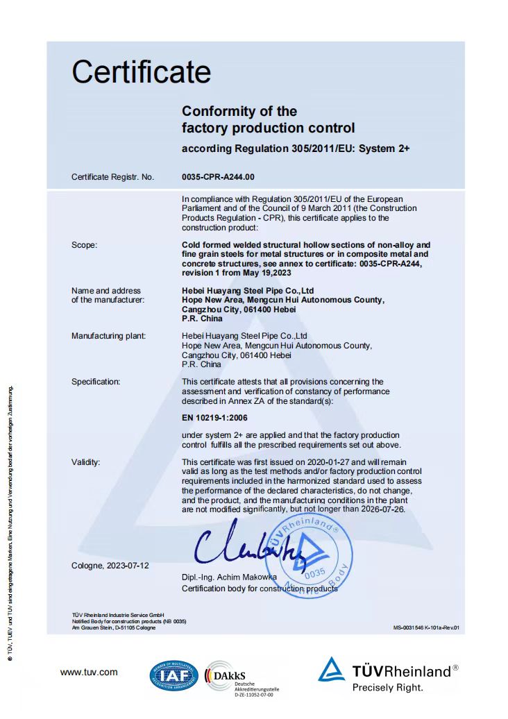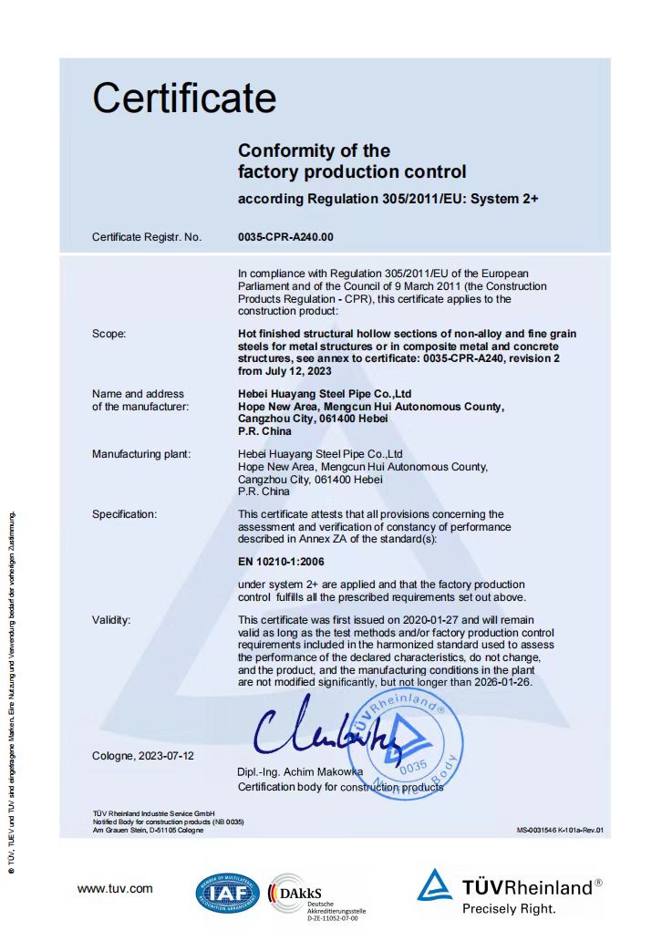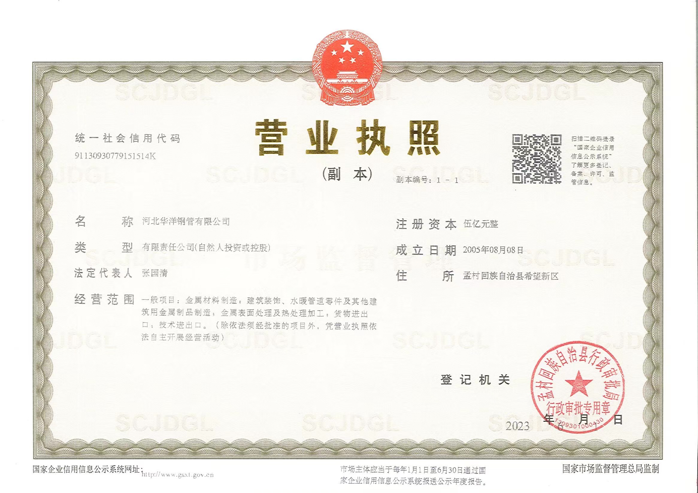 河北華洋鋼管有限公司公司創(chuàng)建于2005年,注冊資金5億元,公司占地面積1000余畝,固定資產12億元,年銷售收入近100億元,現有員工600余人。“華洋牌"高頻直焊鋼管被評為“河北省名牌產品”,年生產能力可達260萬噸,2024年河北華洋鋼管有限公司榮獲河北省百強民營企業(yè)(69位),河北省百強制造業(yè)(57位)榮譽稱號。