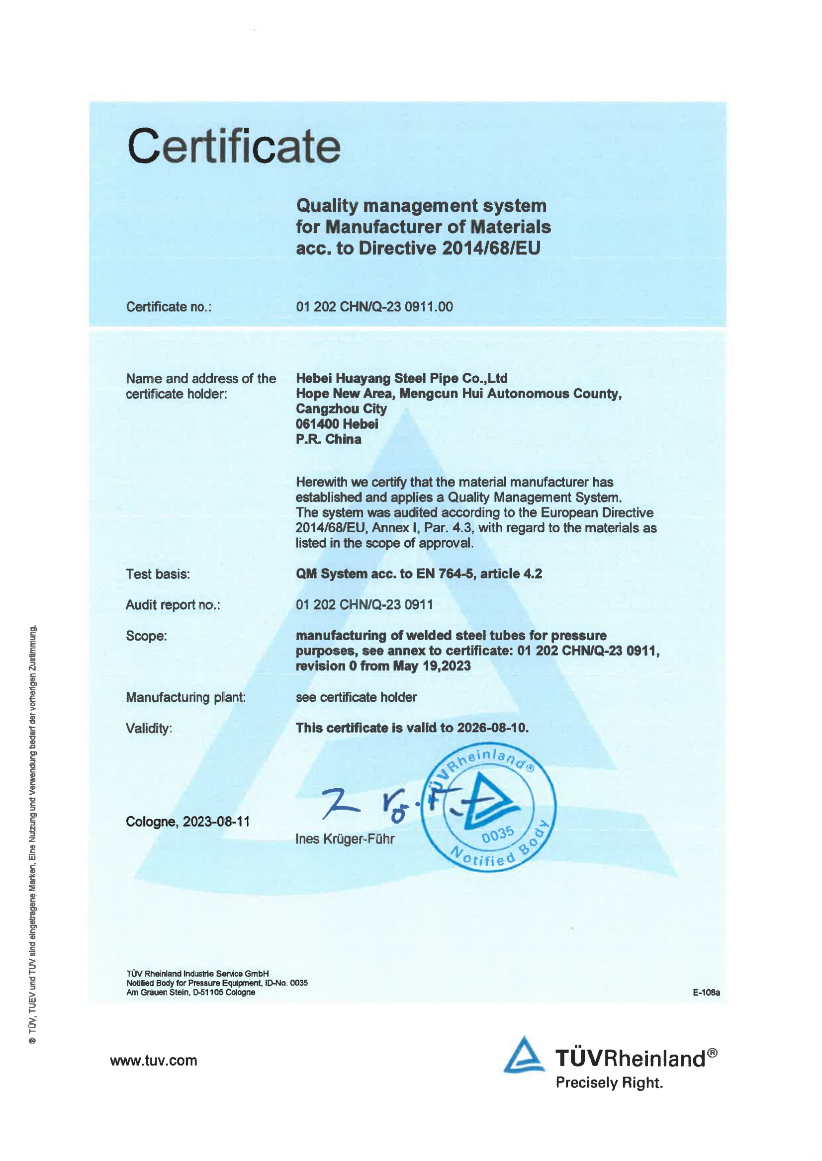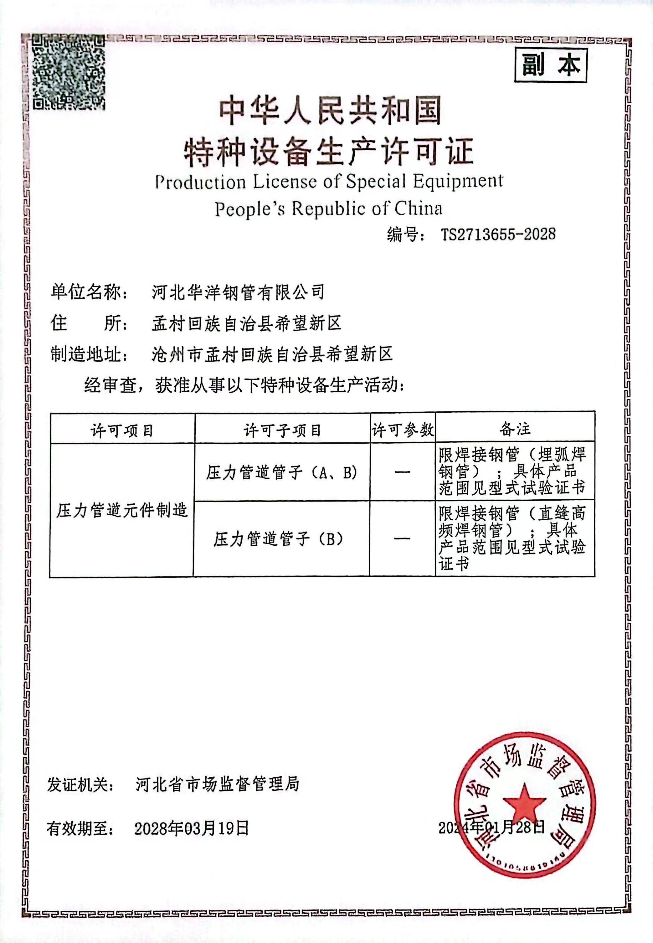 公司產品主要用于石油、天然氣、水、蒸汽、煤氣等高、中、低壓流體輸送管道及打樁、橋梁、建筑等結構用鋼管,并承擔了國內外標志性工程建設,華洋作為一個綜合型生產企業(yè),下設河北銘高貿易有限公司,以及在天津石家莊、山東、四川、廣州等地設立有3家分公司和5個辦事處。產品銷往各個城市井出口東南亞、中東、歐美等八十多個地區(qū),在國內外享有很高的聲譽。